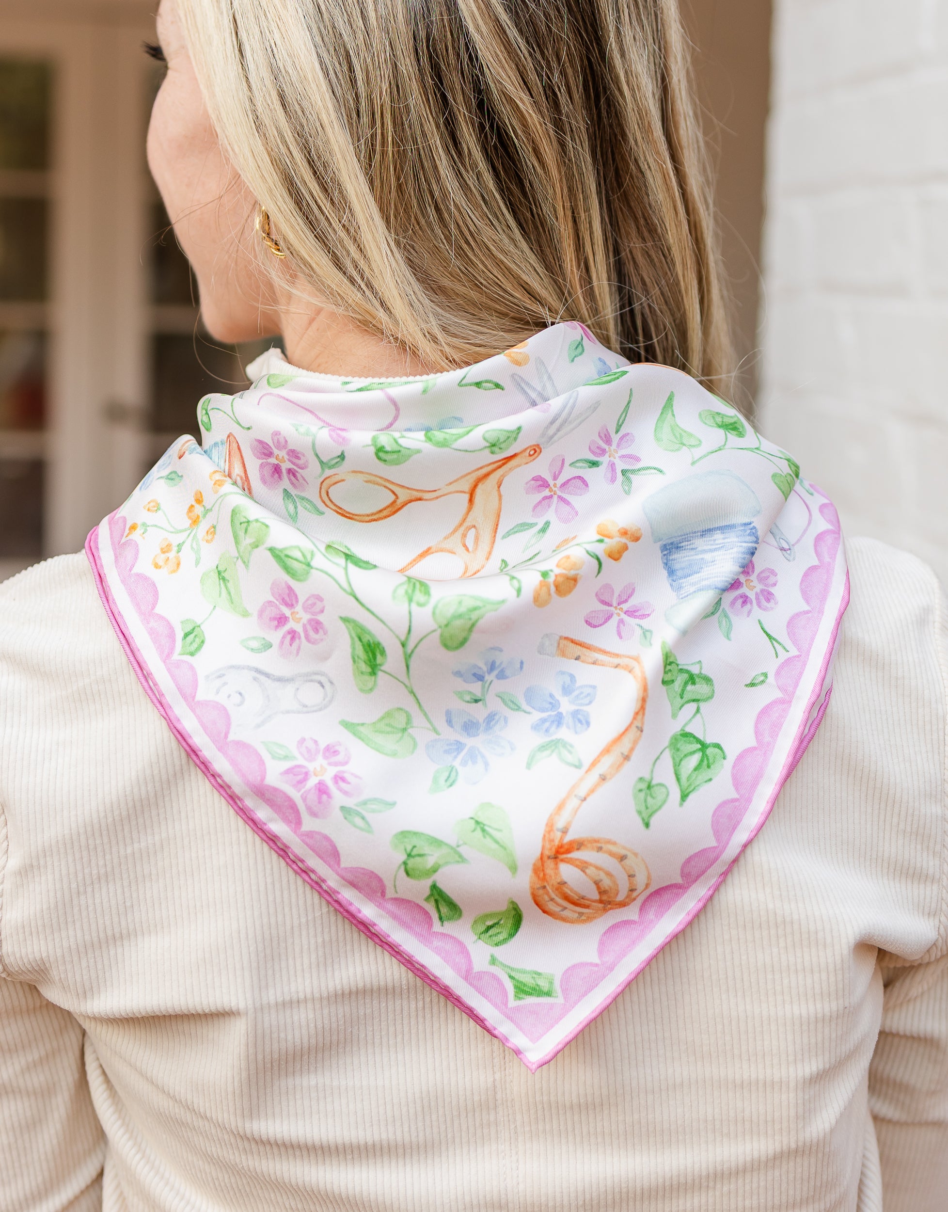 Celebrating one of my favorite hobbies- needlepoint! From needlers to thread, this scarf illustration is perfect for the stitcher in your life!