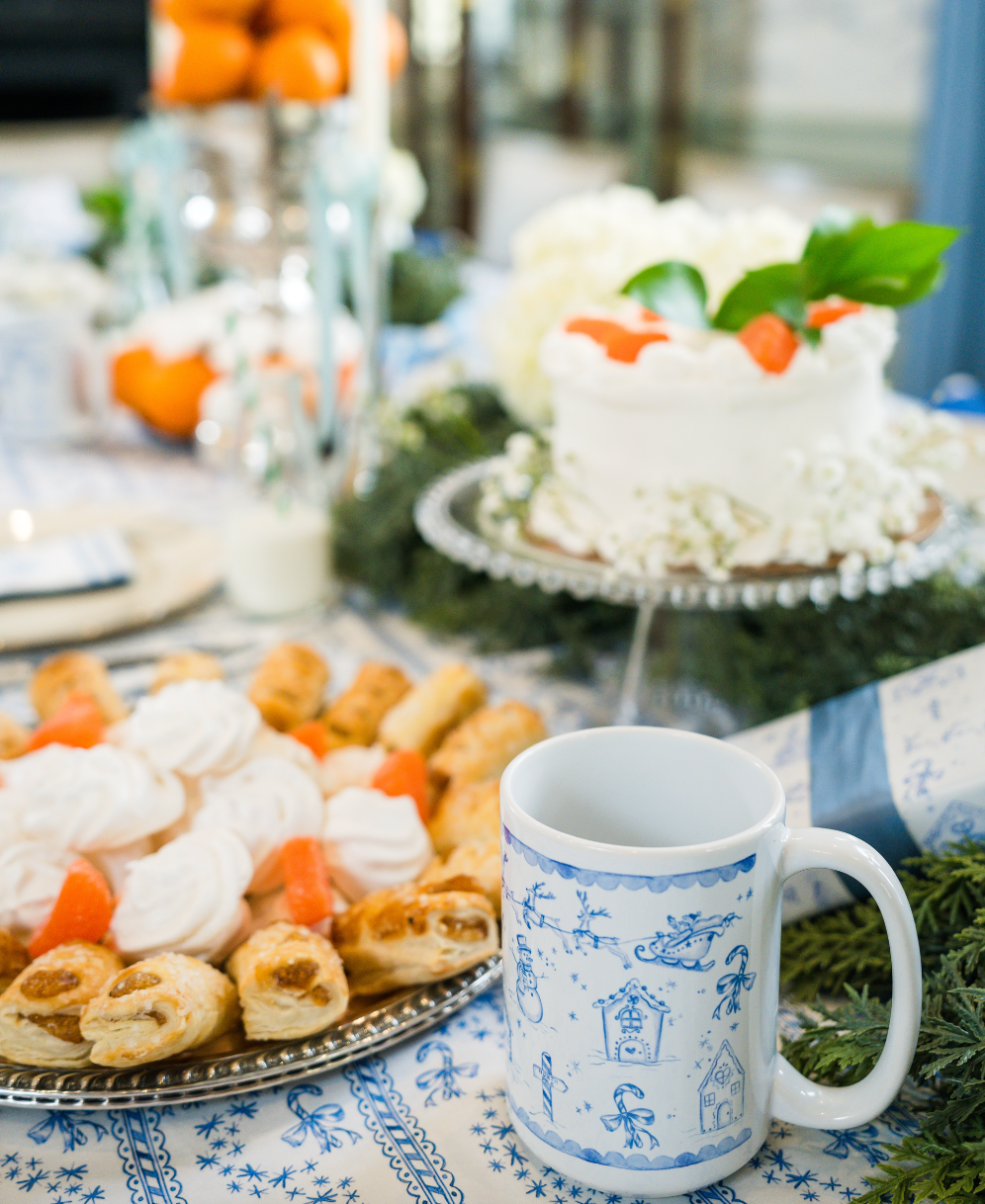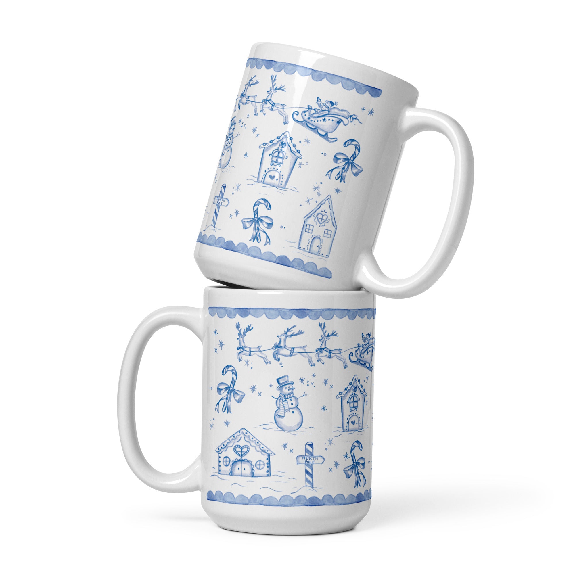 A cozy mug with our signature winter toile design and classic red handle perfect for hot cocoa by the fire or a quick coffee to set the joyful tone of your day!